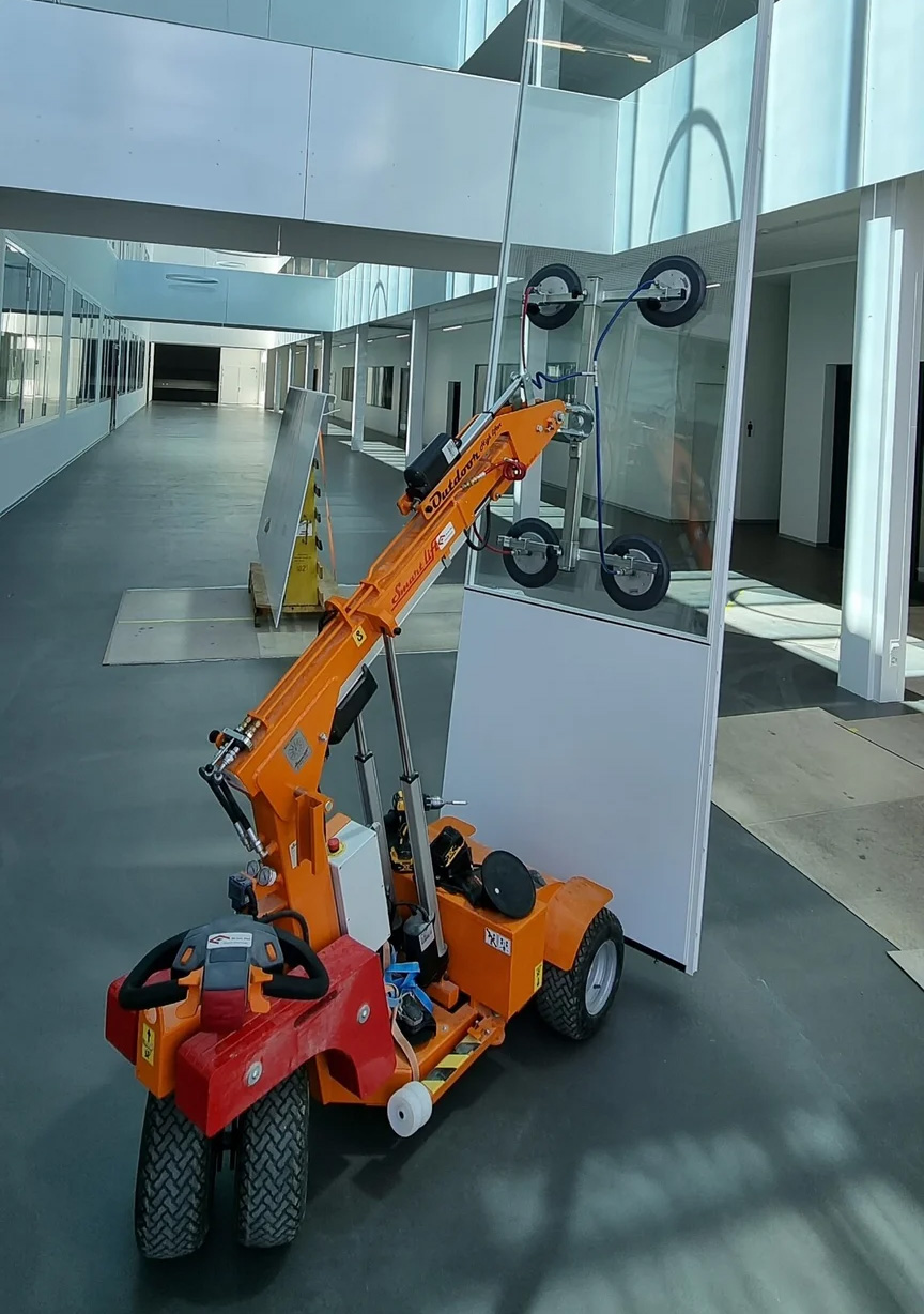 Unser Angebot sieht aufgrund unangenehmer Situationen keine Vermietung des Glasmontageroboters ohne unseren Monteur vor.