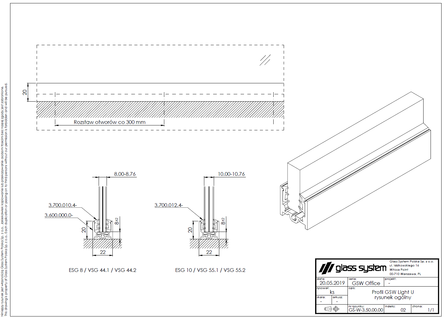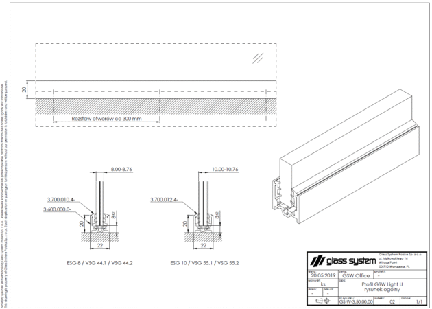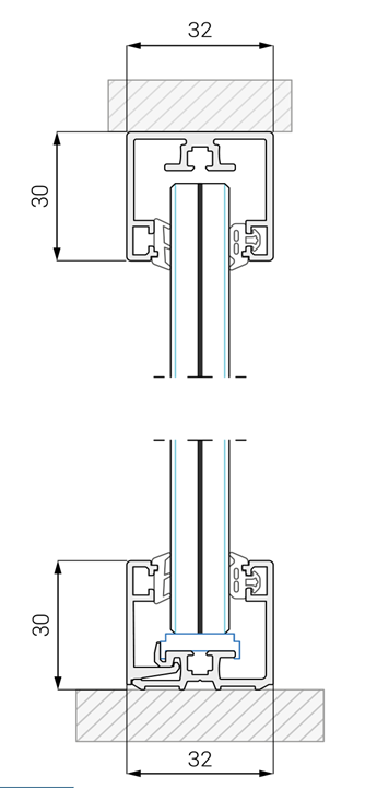 Leichte und robuste Konstruktion für Trennwände, die keine besonderen akustischen Anforderungen erfüllen müssen. Diese Art von Profil kann z.B. für Rezeptionswände verwendet werden, wo es minimalistisch und ordentlich aussehen würde.
