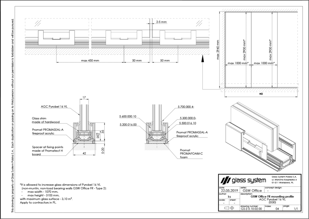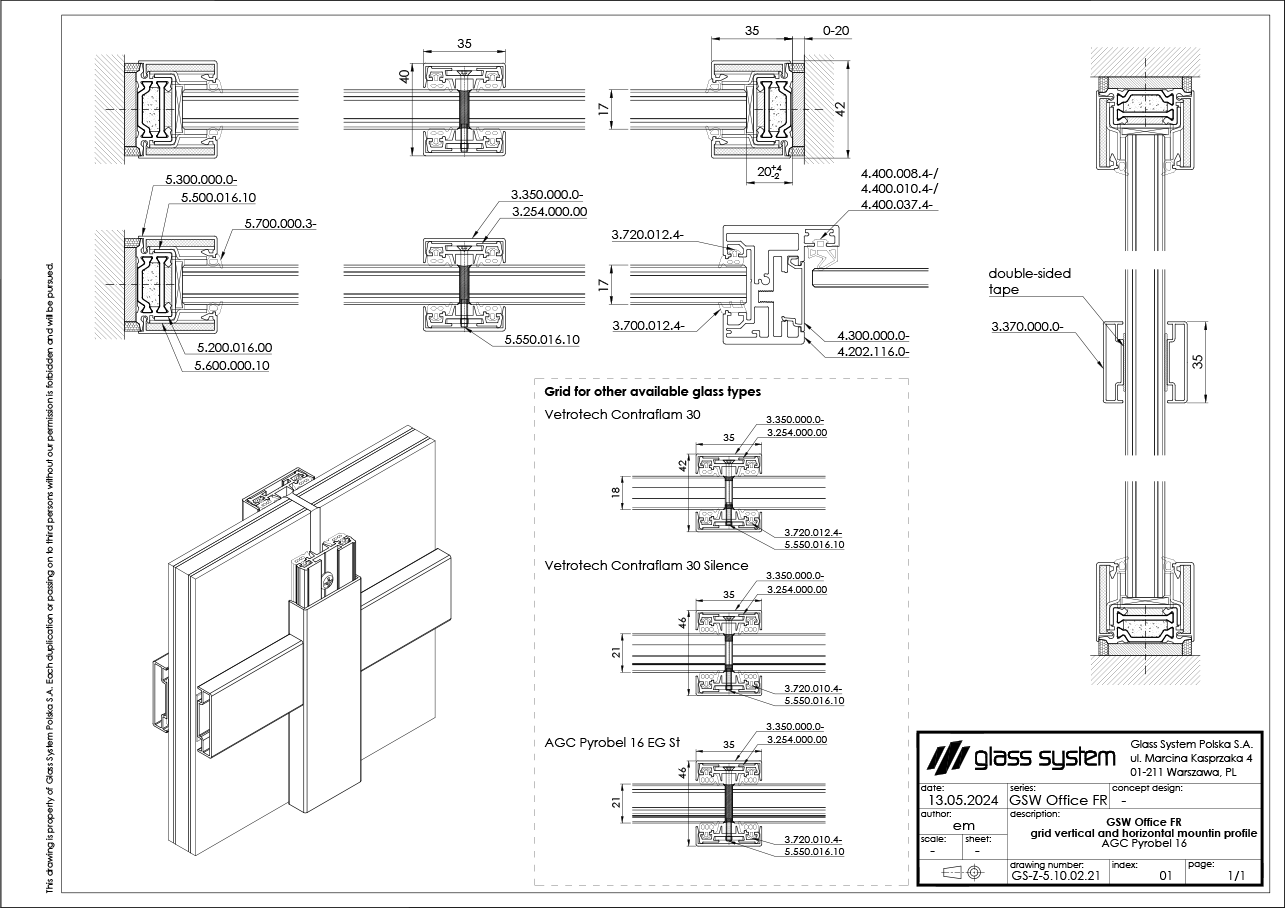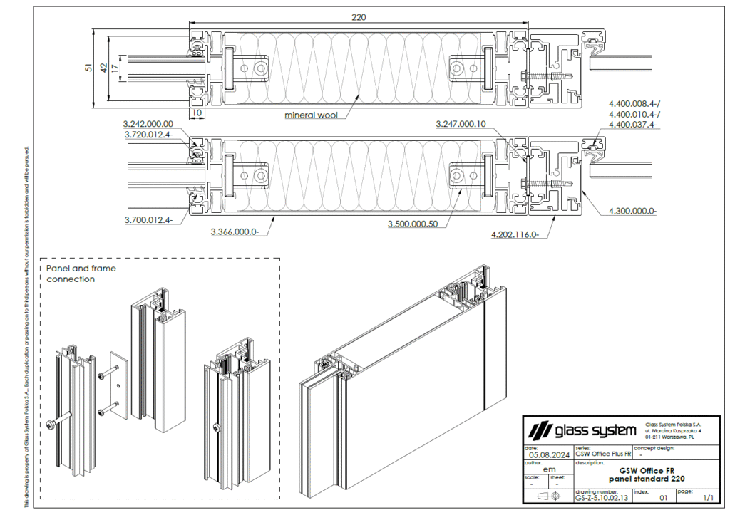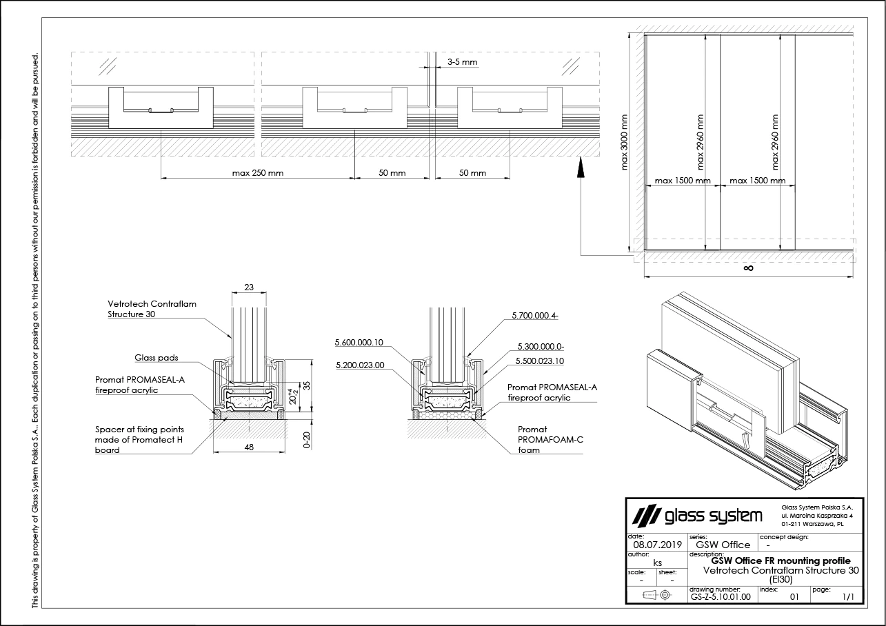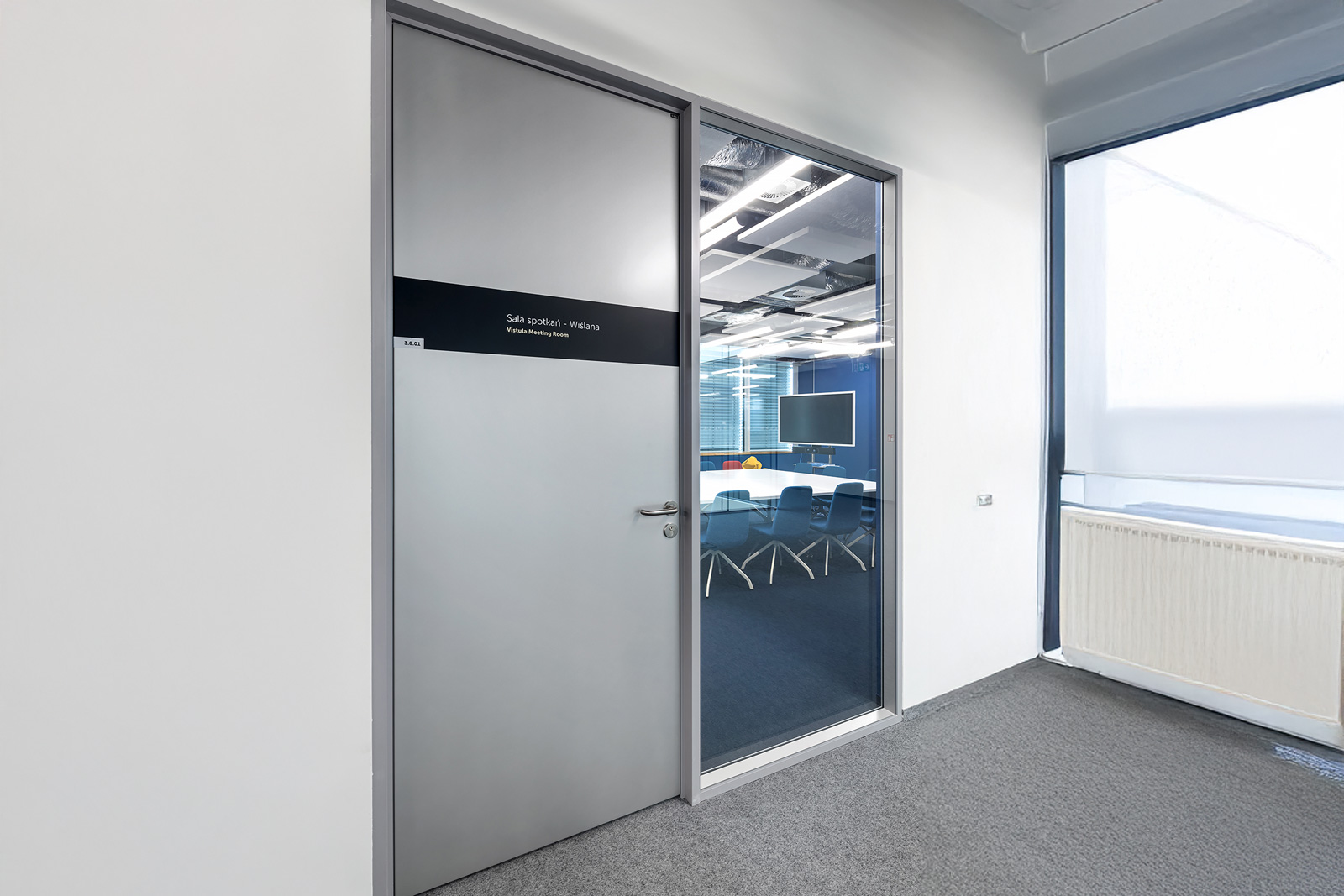 der Feuerwiderstand, je nach verwendetem Glastyp – EI 15, EI 30 oder EI 60 – ermöglicht die richtige Auswahl der Wandparameter, um die Anforderungen des Projekts zu erfüllen, erhöhte Schalldämmungsparameter, die den Anforderungen für Büroräume entsprechen,