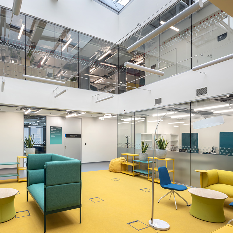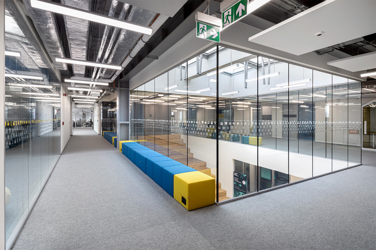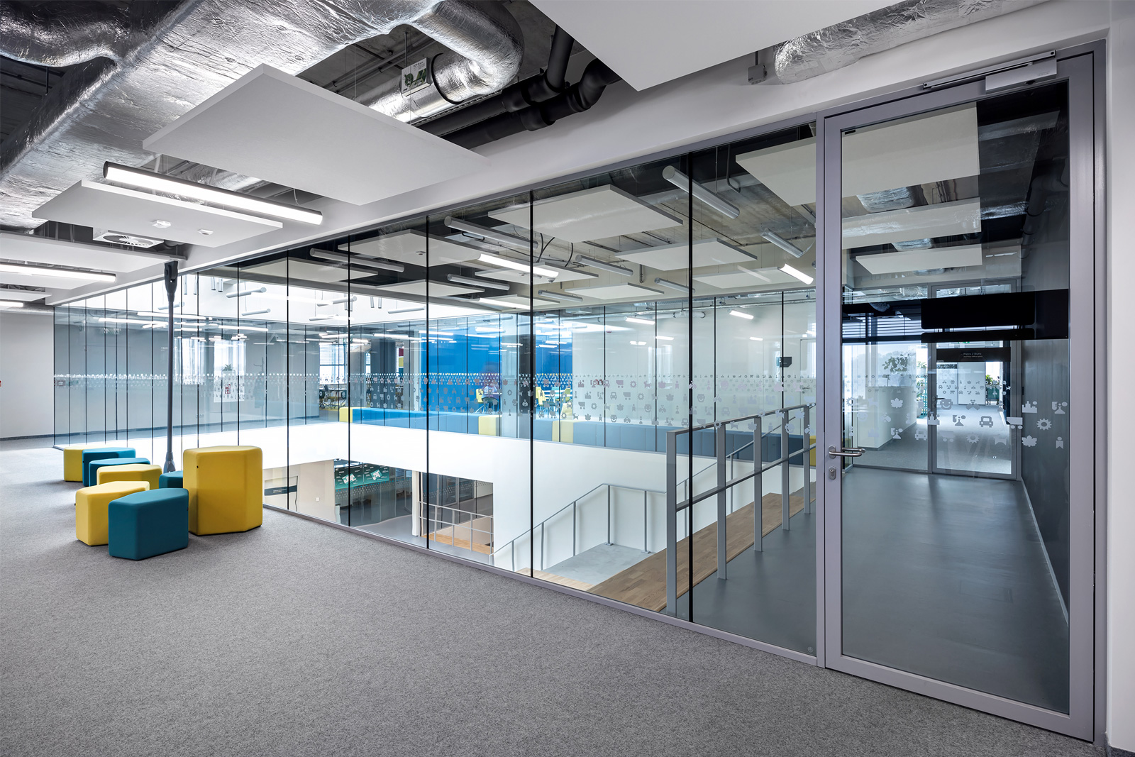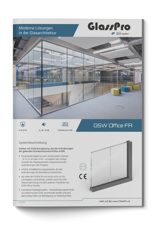 GSW Office FR ist ein Einscheibensystem aus Sprossen- und sprossenfreien Wänden, das die Anforderungen geltender Brandschutzvorschriften sowie der Schalldämmung von Büroräumen erfüllt. Es wurde auf der Grundlage der Überzeugung entwickelt, dass jede Wand in einem modernen Büro ein elegantes und minimalistisches Aussehen bewahren kann.