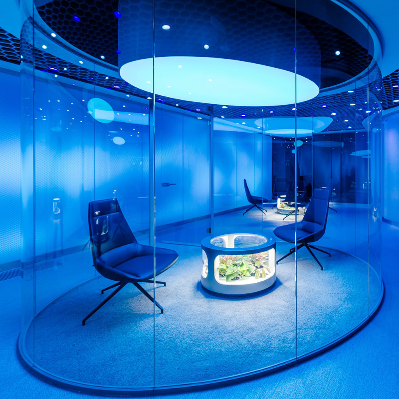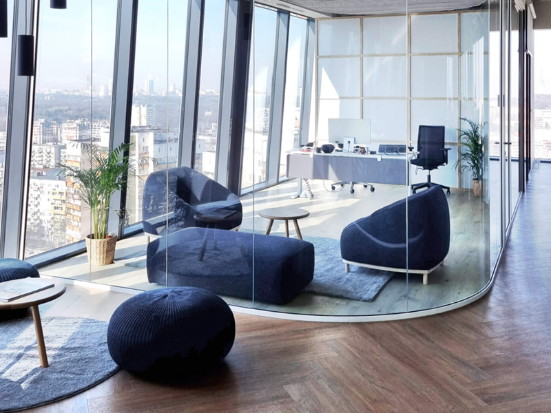 Das System GSW Office ermöglicht Architekten durch die Möglichkeit, Raumecken abzurunden, außergewöhnliche, beeindruckende Projekte umzusetzen.