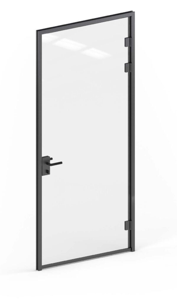 Glastüren mit leichtem und filigranem Design sorgen für den Effekt einer einheitlichen Kontinuität in Glaswänden. Sie sind aus widerstandsfähigem, gehärtetem Glas gefertigt. Sie zeichnen sich durch Festigkeit und Widerstandsfähigkeit gegen Beschädigungen aus. Ihr minimalistisches Design macht sie zu einer idealen Wahl für alle, die Schlichtheit und Modernität schätzen.