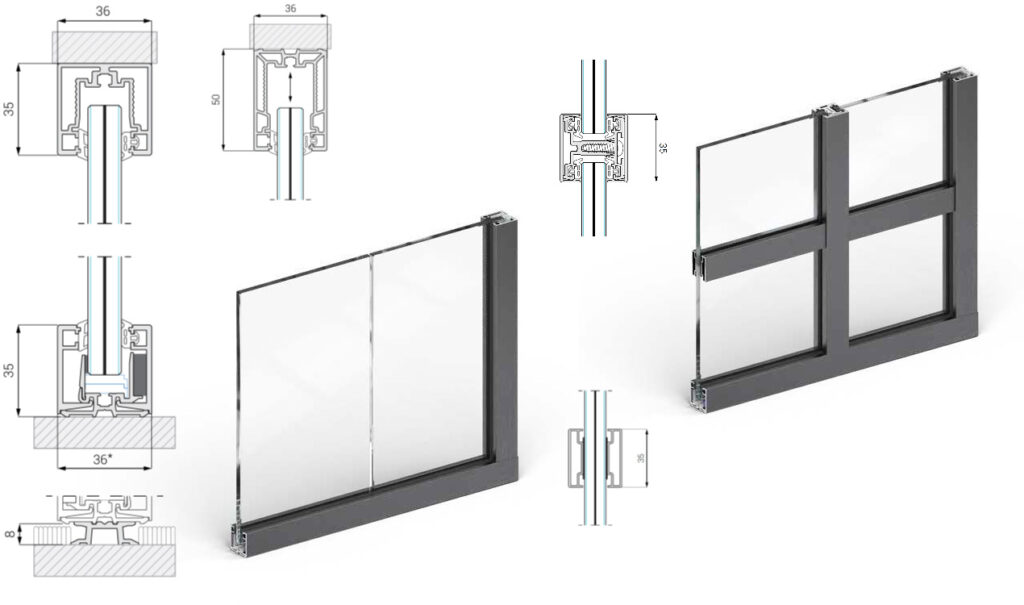Außerdem bietet unser Systemprofil dank der integrierten Glashalter maximale Sicherheit beim Einbau, was sich in einer schnellen Montage und weniger Abfall niederschlägt.
