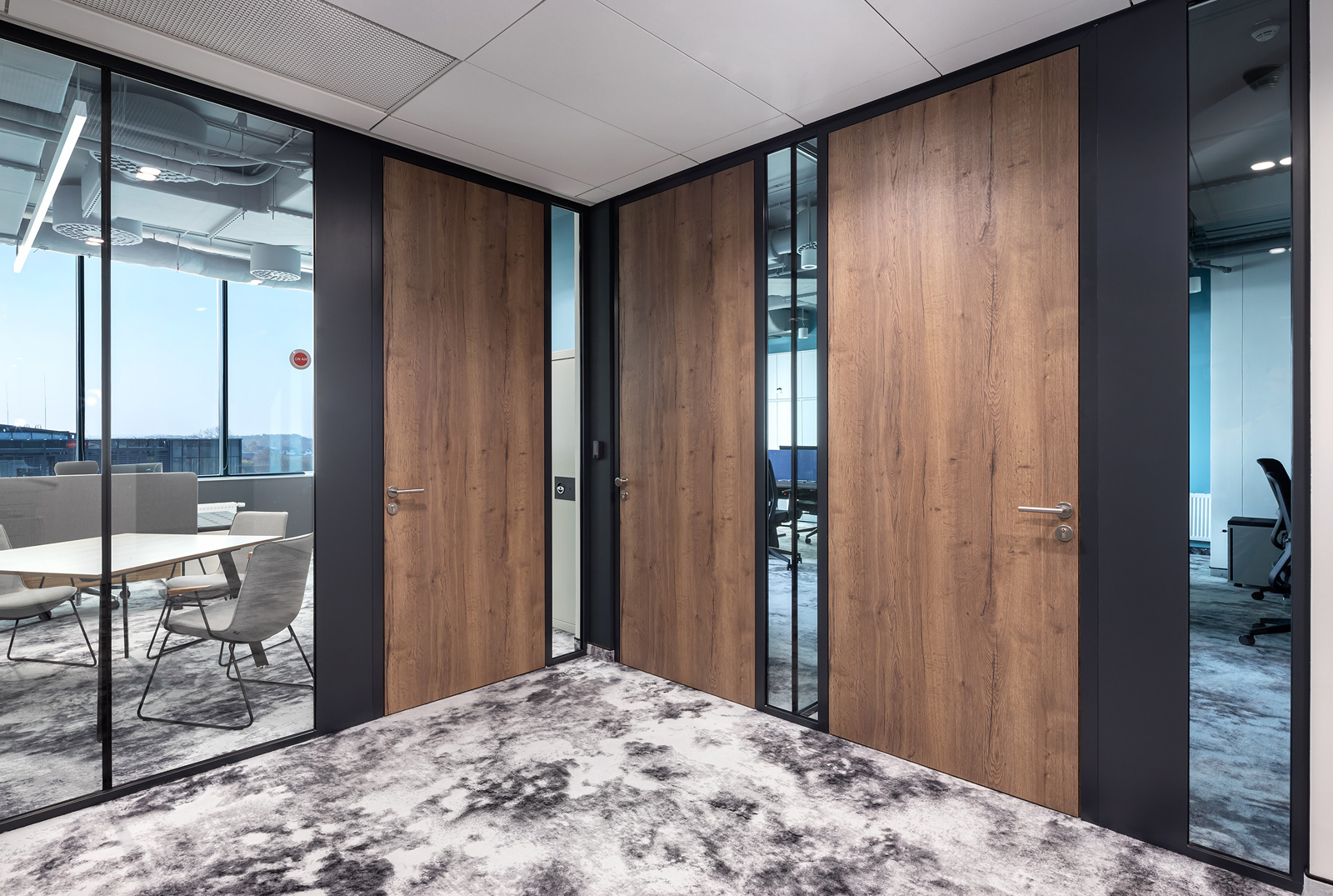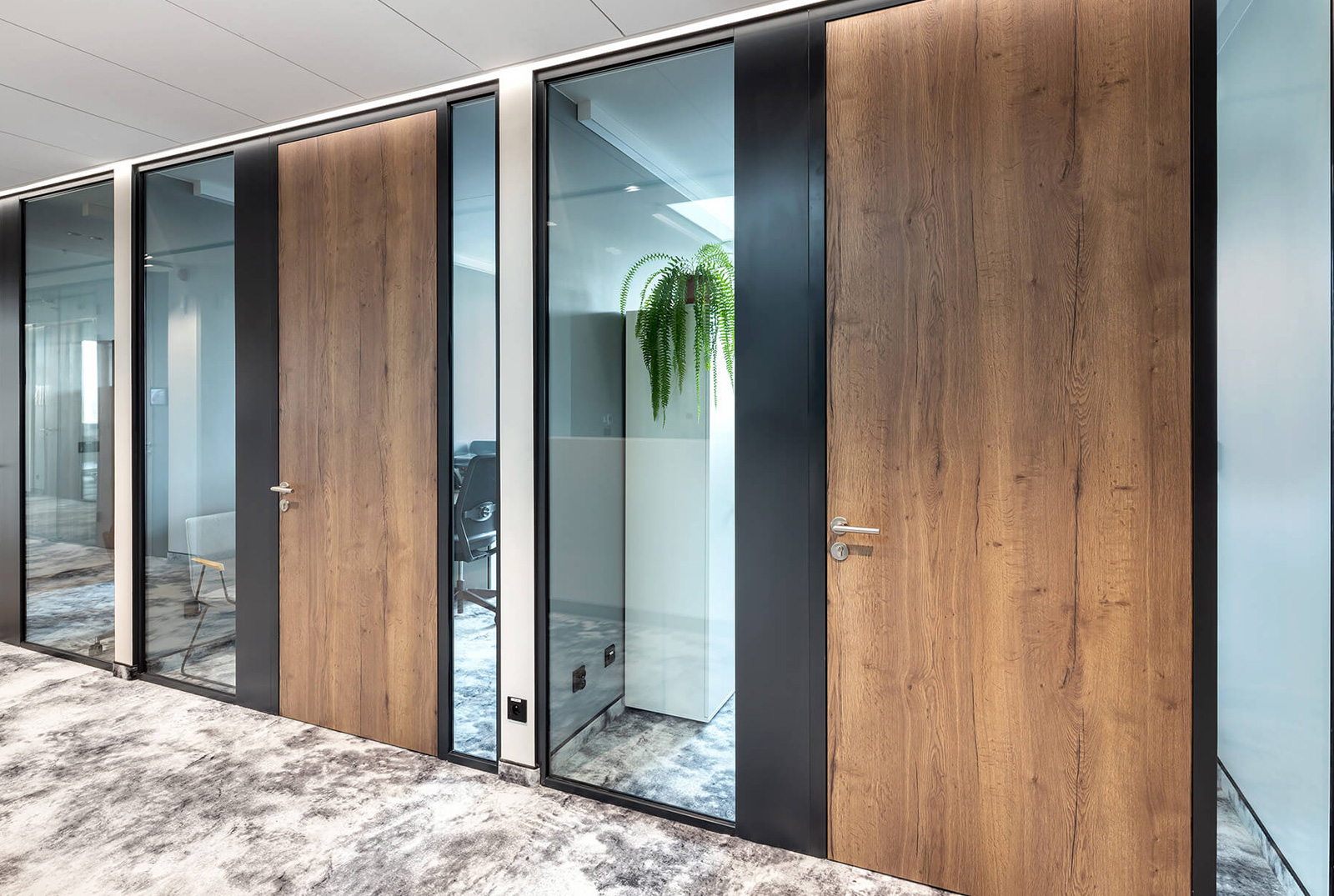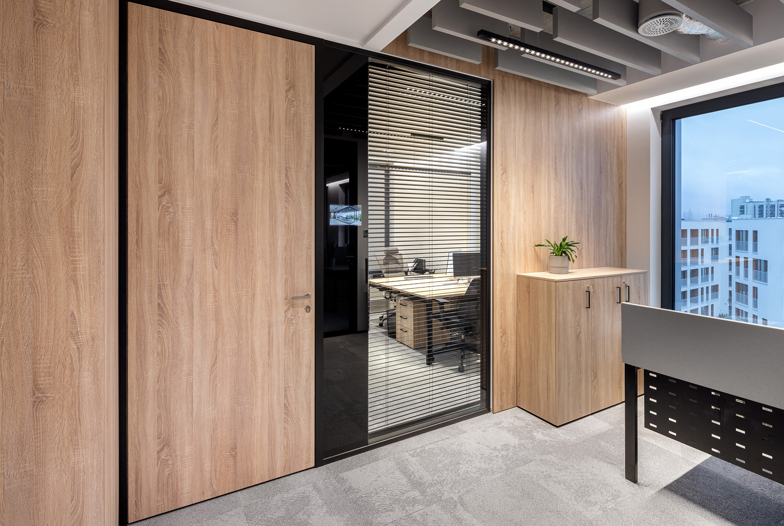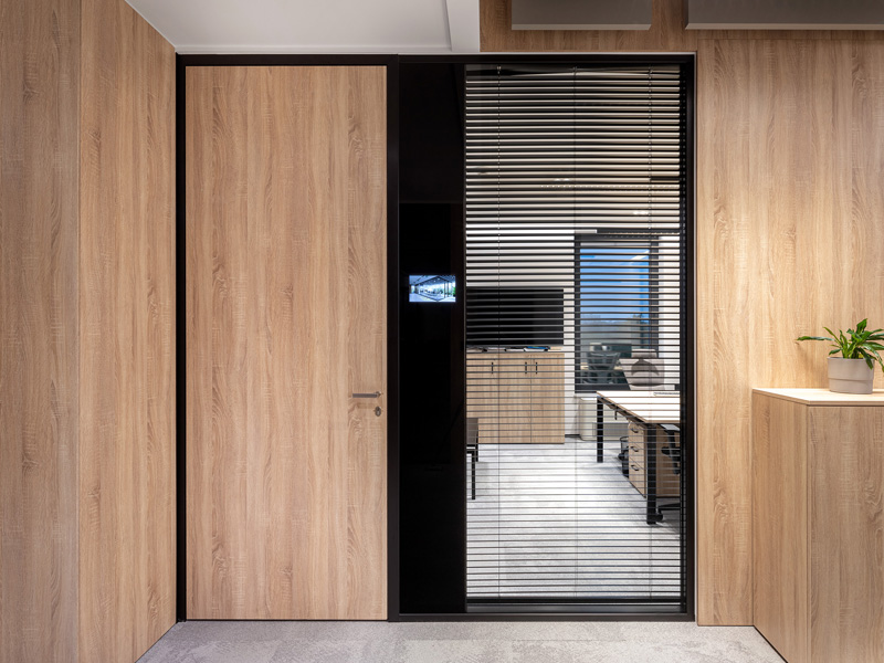 Die Holzstruktur ist eine traditionelle und ästhetisch ansprechende Türoberfläche. Sie kann so angepasst werden, dass sie perfekt mit anderen Elementen des Innenraums zusammenspielt. Holztüren sind perfekt für Orte, an denen wir hohe Schalldämmungsparameter erreichen möchten und uns die Privatsphäre von nicht transparenten Türen wichtig ist.