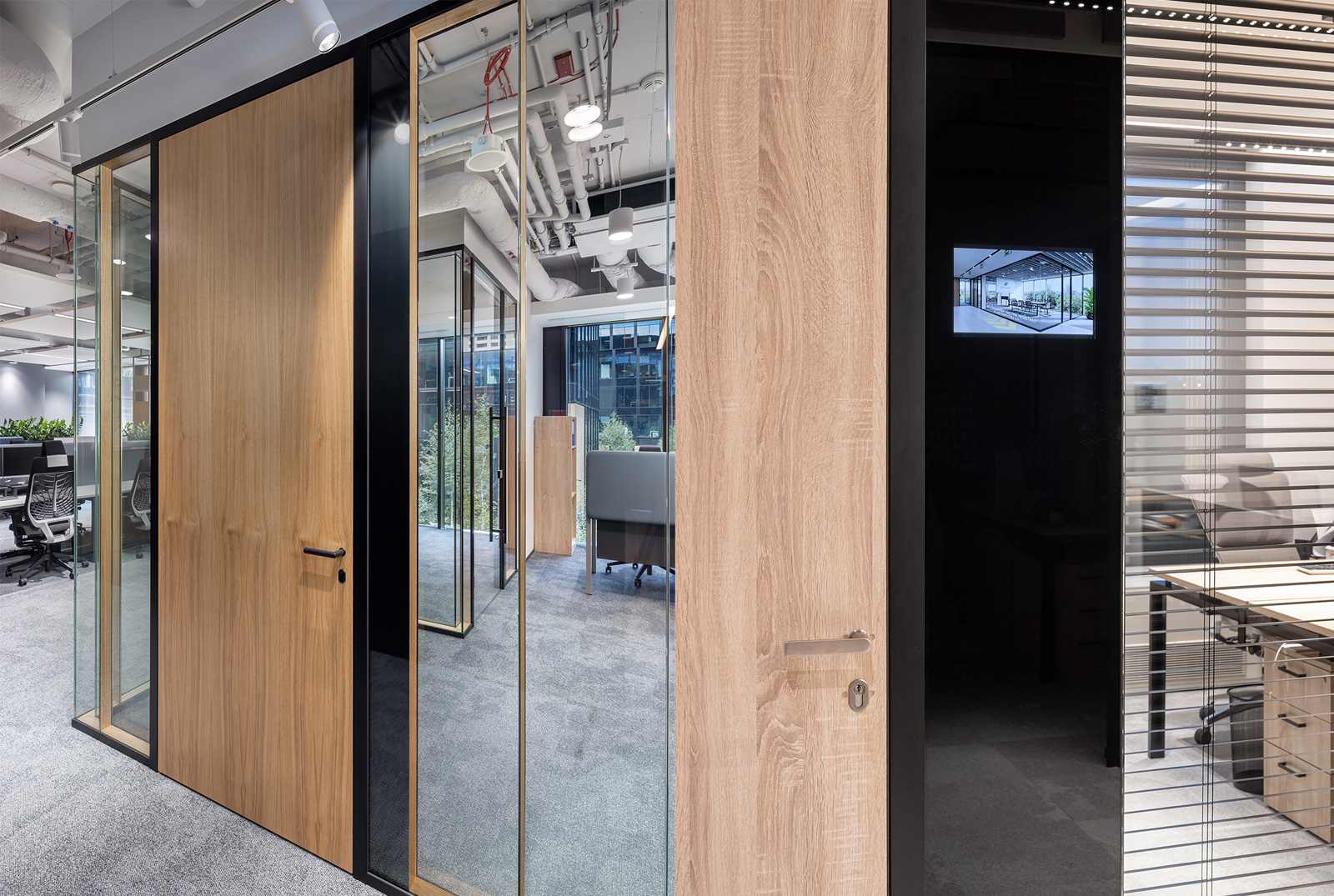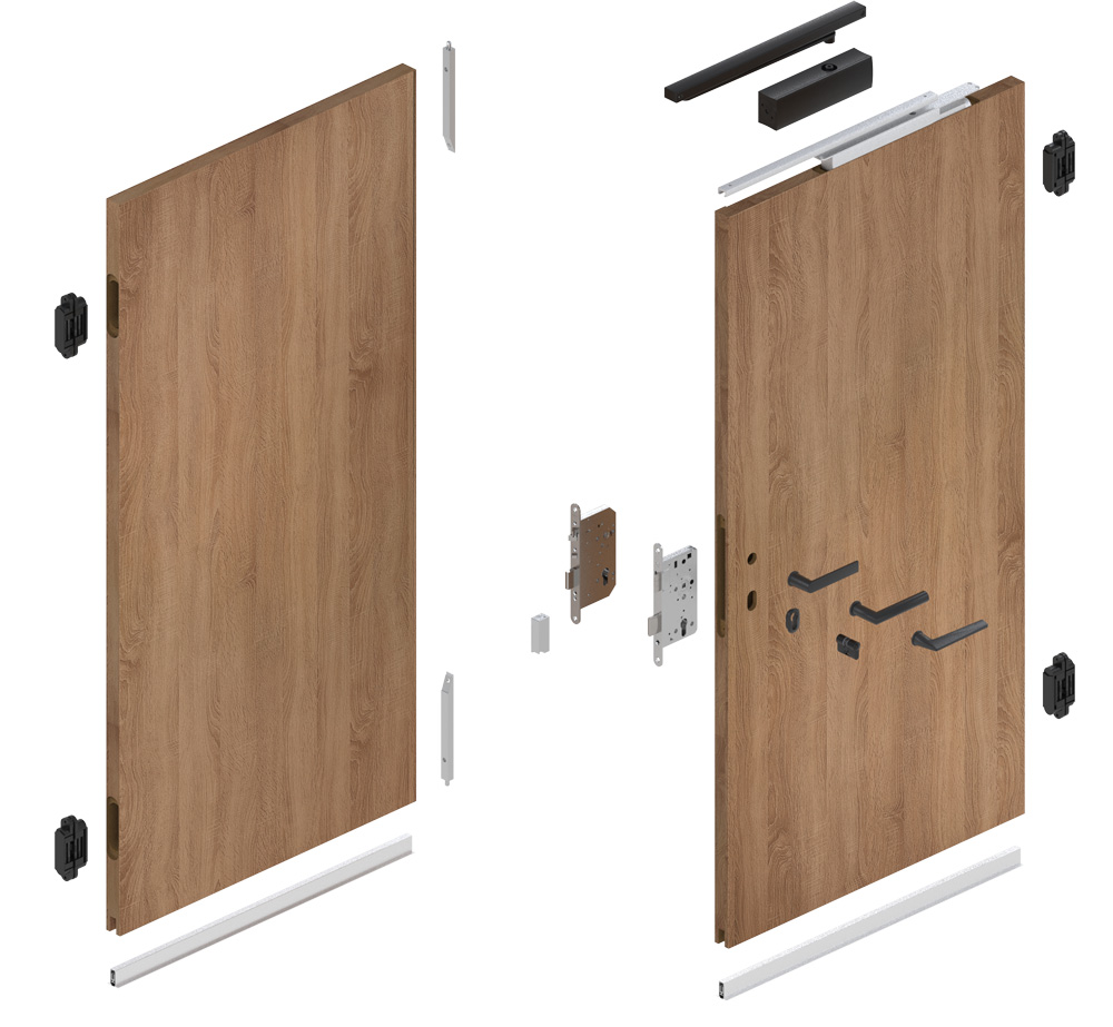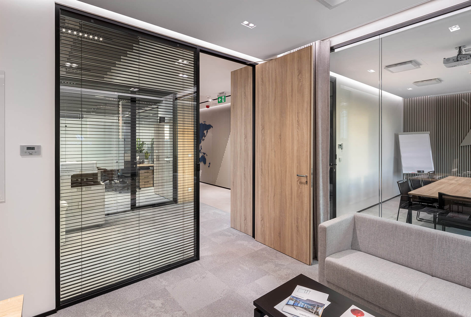 Die Holzstruktur ist eine traditionelle und ästhetisch ansprechende Türoberfläche. Sie kann so angepasst werden, dass sie perfekt mit anderen Elementen des Innenraums zusammenspielt. Holztüren sind perfekt für Orte, an denen wir hohe Schalldämmungsparameter erreichen möchten und uns die Privatsphäre von nicht transparenten Türen wichtig ist.
