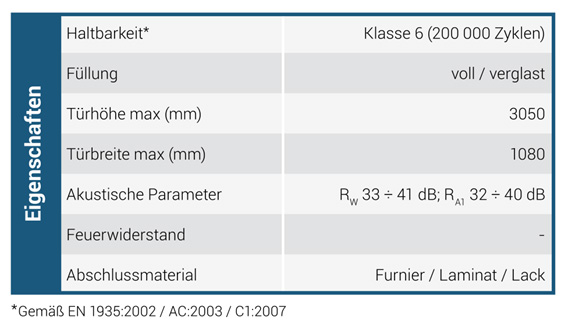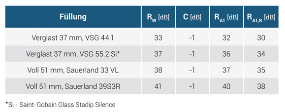 - Schalldämmung Rw von 33 dB bis 41 dB