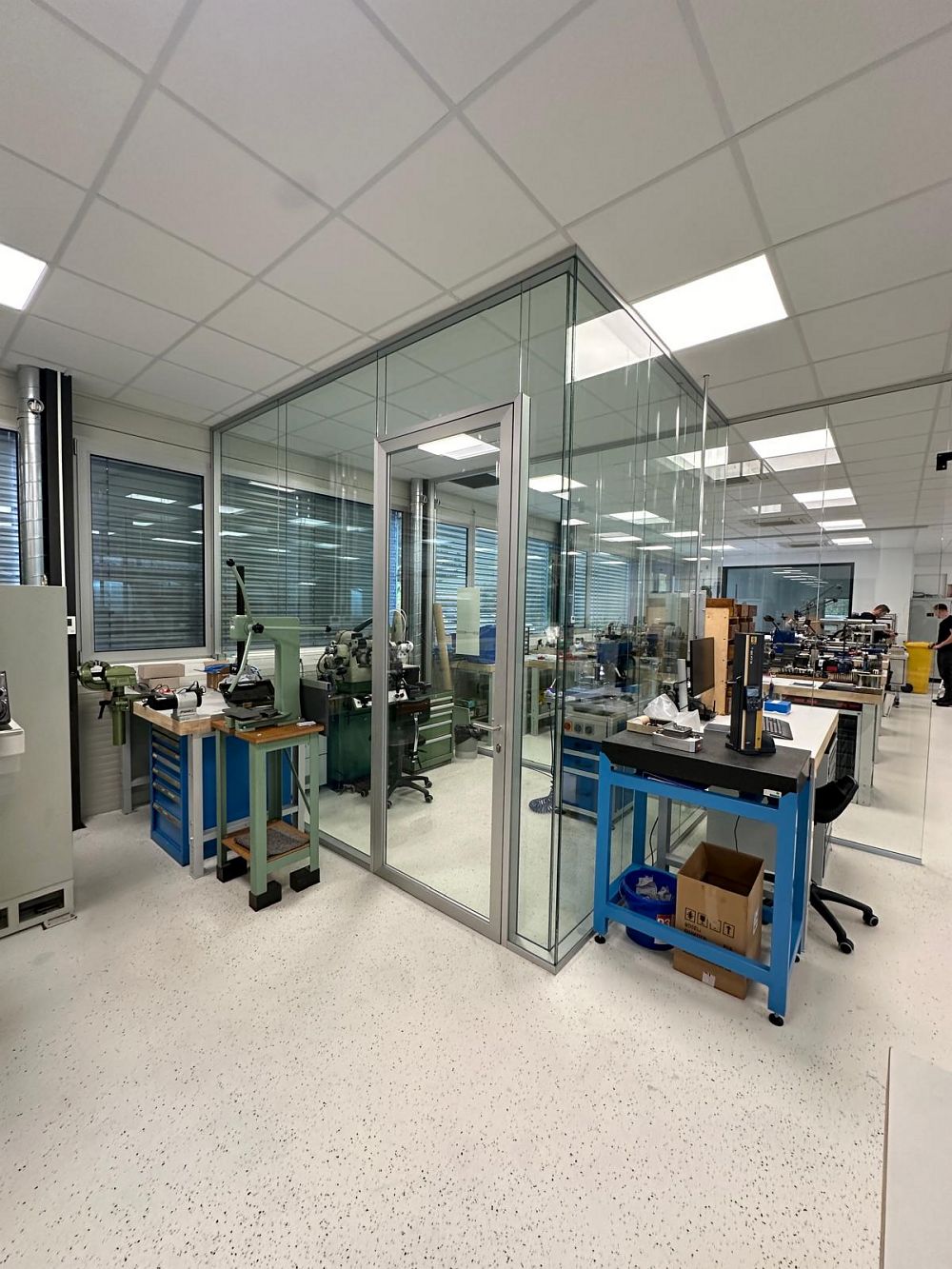 Mit Freude präsentieren wir unsere Zusammenarbeit mit der Firma Azurea, die sich auf die Bereitstellung innovativer Lösungen in der Mikrotechnologie für die Medizin spezialisiert hat. Im Rahmen der Realisierung für dieses dynamisch wachsende Unternehmen haben wir einseitig verglaste Trennwände geliefert, die sich ideal in der Industrie bewähren, sowie doppelte akustische Trennwände, die mit dem Ziel entworfen wurden, die Räume, in denen laute Maschinen betrieben werden, angemessen zu schalldämmen.
