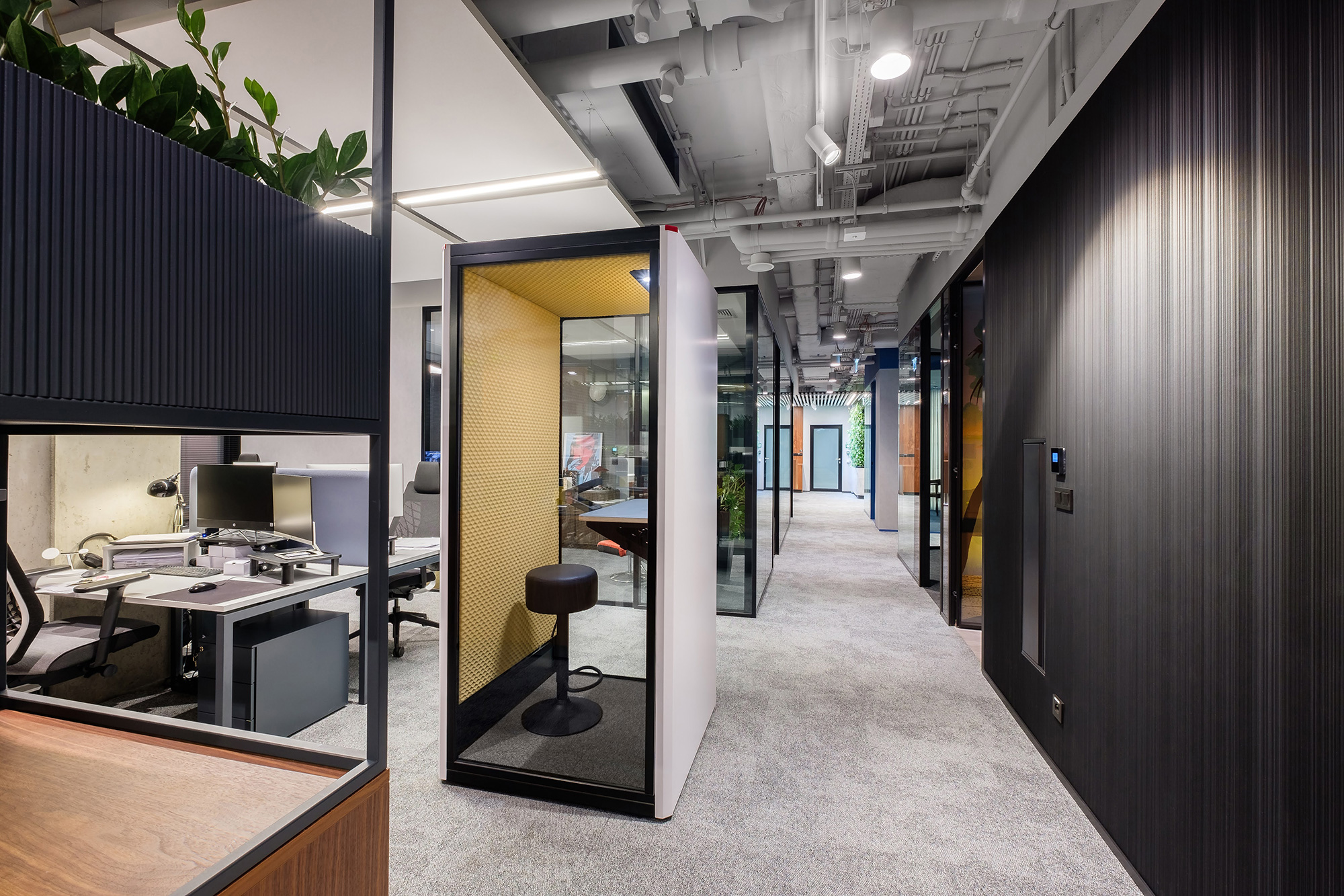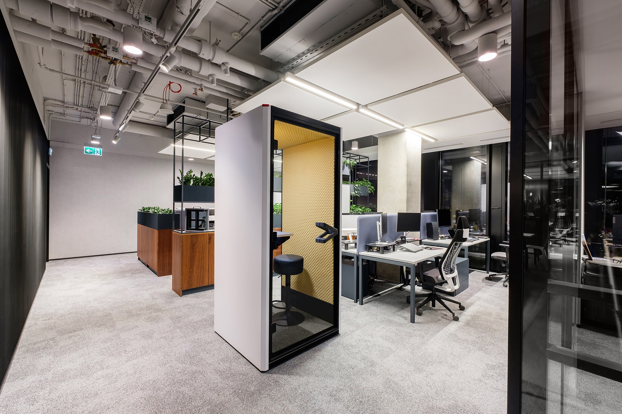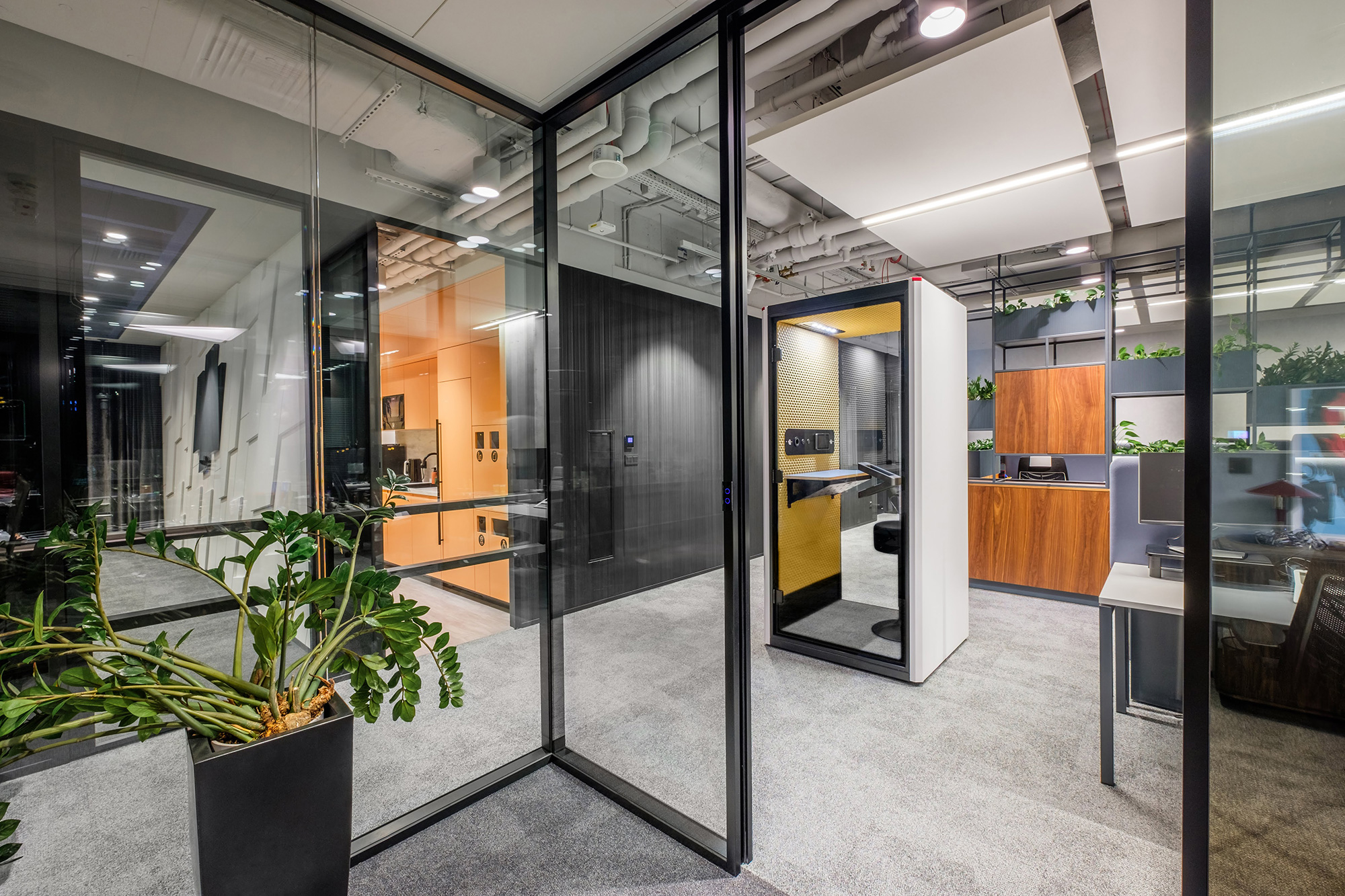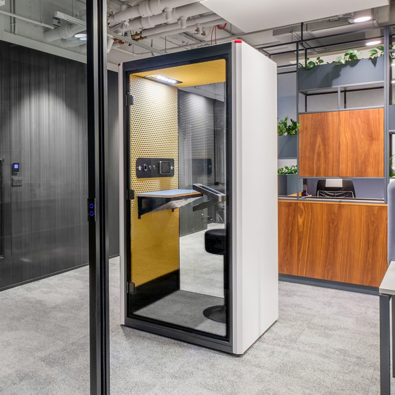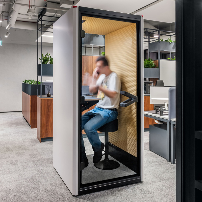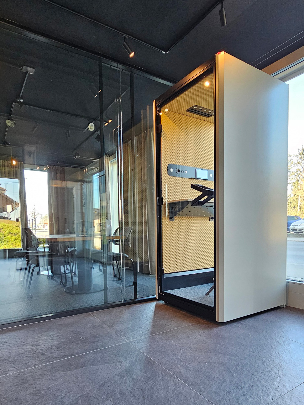 Beyond 1 ist ein moderner Büro-BOX, der für eine Person konzipiert wurde. Er ist mit Blick auf die Bedürfnisse von Telekonferenzen und konzentrierter Arbeit entworfen. Er bietet ein geräumiges Interior sowie einen Tisch in fester Höhe und eine Kombination aus Gesichts- und Deckenbeleuchtung, die Flexibilität und ein hervorragendes Aussehen vor der Kamera für alle, die ihn nutzen, gewährleisten. Eine effiziente und regulierbare Belüftung sorgt auch bei längerem Gebrauch für Komfort.