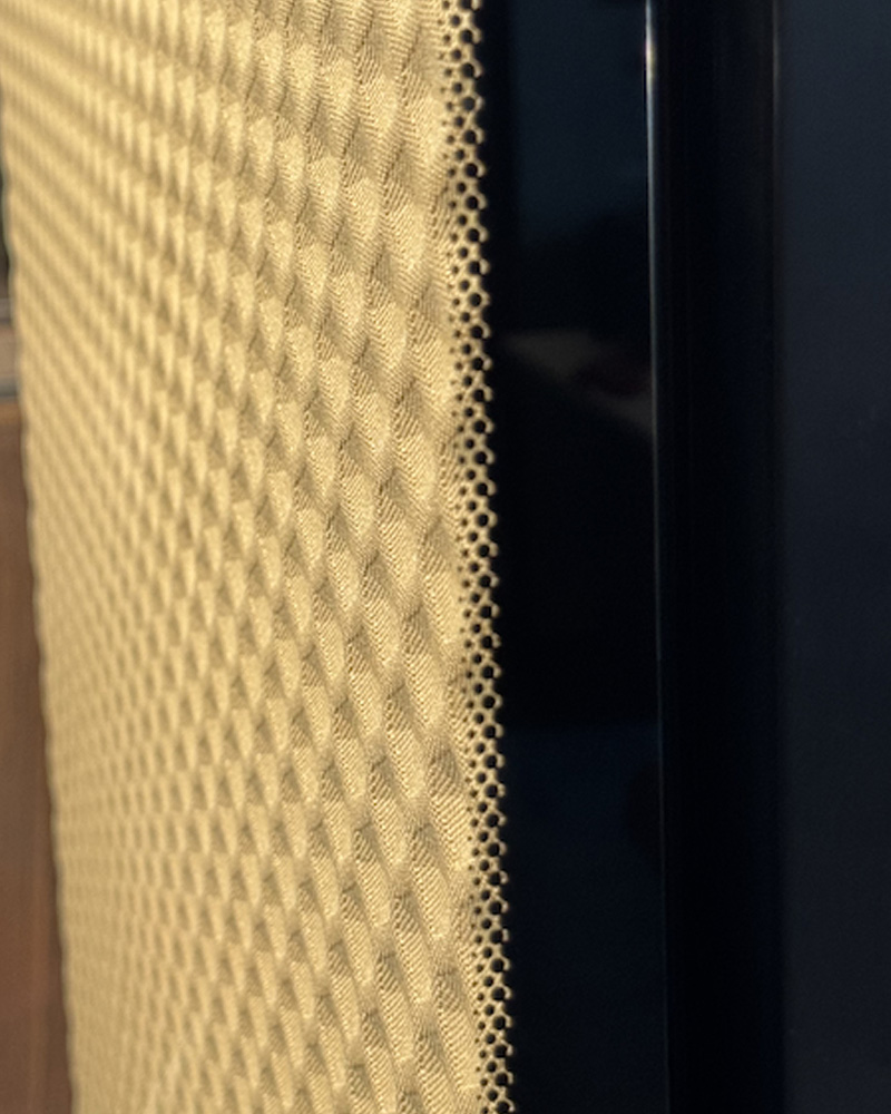- Innen (Wände, Decke): PET-Panel, mit Stoff laminiert (Camira Quest, Gabriel Cubic, Atlantic)