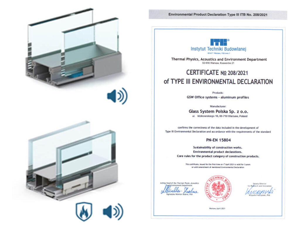 Alle GSW Office-Systeme, einschließlich der Brandwände, sind mit einer Umweltproduktdeklaration (EPD) ausgezeichnet worden.